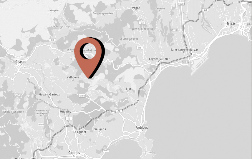 Facilement accessible depuis Nice, Monaco, Cagnes-sur-Mer, Saint-Laurent-du-Var, Vence, Villeneuve-Loubet, Roquefort-les- Pins, Opio, Le Rouret, Châteauneuf-Grasse, Sophia-Antipolis, Biot, Mougins, Antibes, Golfe-Juan, Vallauris, Cannes, Le Cannet, Grasse, Mouans-Sartoux, Mandelieu, Saint-Cézaire-sur-Siagne, Saint-Vallier-de-Thiey.